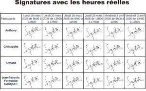 - Signatures des participants en temps réel (possibilité de grouper s'il y a plusieurs participants)