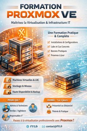Public Admin Proxmox qui souhaite mettre en place des fonctions de HA à très hautes performances ! Introduction à la formation La virtualisation avec Proxmox a fait ses preuves. Toutefois, des fonctions plus élaborées peuvent répondre à vos attentes (VSAN, ZFS...) Objectifs de la formation Synchroniser des serveurs virtuels et des containers (LXC...) en HA avec CEPH, ZFS ... Pré-requis à la formation Avoir suivi la formation Proxmox niveau 1 Avoir de bonnes bases en réseaux Plan de cours 1. FONCTIONNEMENT D'UNE INFRASTRUCTURE PROXMOX EN CLUSTER Notions de cluster, maître et noeuds Ajout de noeuds à un cluster Gestion centralisée via l'interface Web 2. MIGRATION ET RÉPARTITION DE CHARGE Migration manuelle et automatique des VM entre noeuds Impact de la migration sur la charge des serveurs Introduction à la haute disponibilité (HA) 3. SÉCURISATION DE L'ENVIRONNEMENT PROXMOX Gestion des permissions et des utilisateurs Configuration du pare-feu Proxmox Sécurisation des accès (SSH, interface Web...) 4. OPTIMISATION DES PERFORMANCES DES VMS ET DU STOCKAGE Ajustement des ressources CPU et RAM Gestion des disques et caches (ZFS, Ceph) Surveillance des performances et dépannage 5. AUTOMATISATION DE L'ADMINISTRATION Introduction aux scripts pour Proxmox Automatisation des déploiements de VM Sauvegardes automatisées avec 'cron' 6. SUPERVISION ET DÉPANNAGE AVANCÉ Analyse des journaux système et des logs Proxmox Dépannage des erreurs fréquentes Intégration avec une solution de monitoring externe (Zabbix, Grafana) Prix HT 1700 Prix promotionnel 1200 Commentaire sur la promo Tarif HT Avril2026 Questions abordées en plus durant le stage de formation Comment faire du Docker + Kubernate dans un environnement PROXMOX ? |